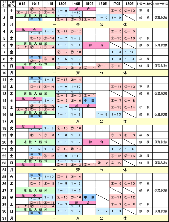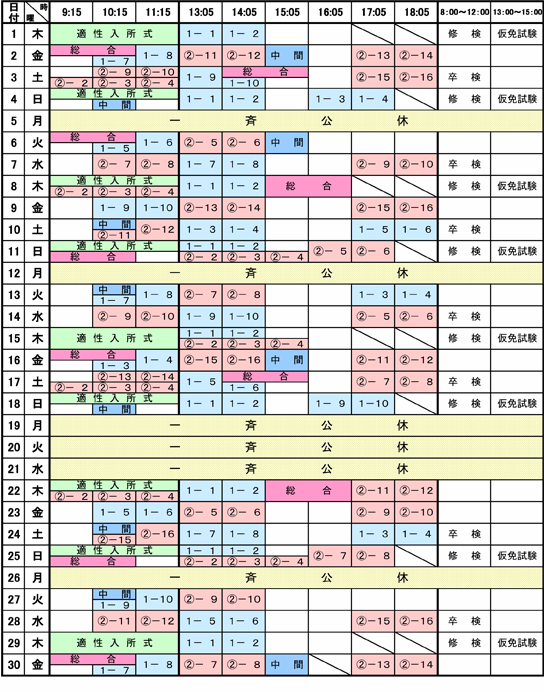 中間・総合は学科のテストです。 中間は修検前、総合は第2段階みきわめ前に、合格することが条件です。 |